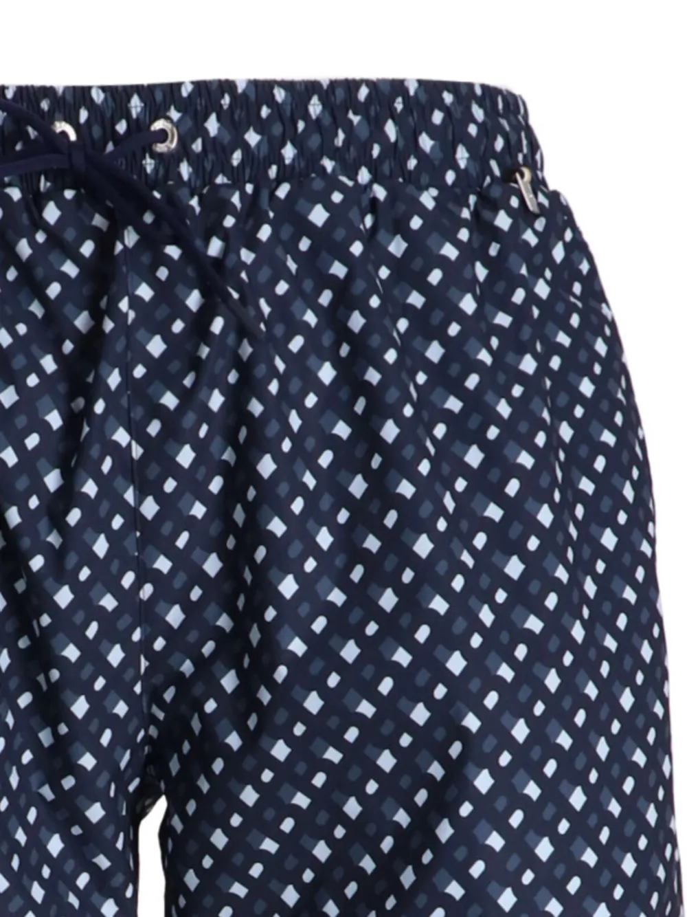 marineblauw elastische tailleband met trekkoord geometrisch patroon lengte tot boven de knie Zwemkleding moet over je eigen kleding worden aangepast.