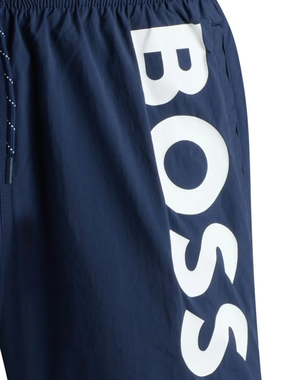 blauw gerecycled polyamide elastische tailleband met trekkoord logoprint aan de zijkant twee steekzakken aan de zijkant paspelzak aan de achterkant Zwemkleding moet over je eigen kleding worden aangepast.
