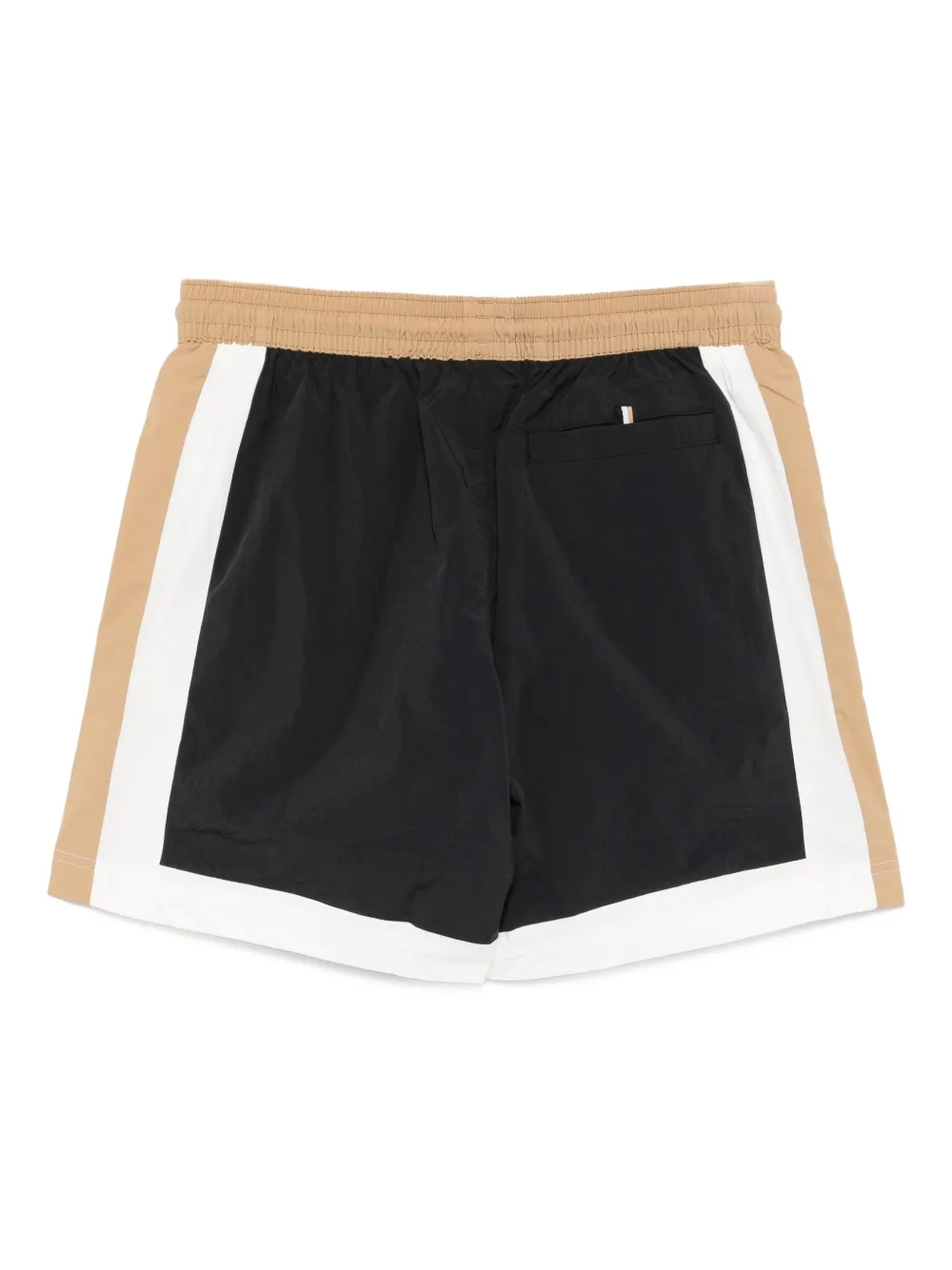 zwart elastische tailleband met trekkoord twee paspelzakken aan de zijkant Zwemkleding moet over je eigen kleding worden aangepast.