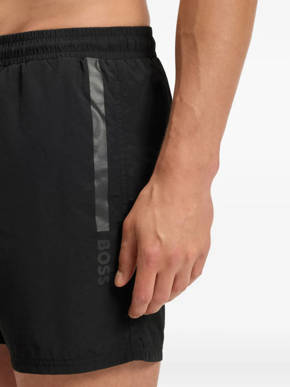 zwart zijstreep trekkoordsluiting logodetail elastische tailleband Zwemkleding moet over je eigen kleding worden aangepast.