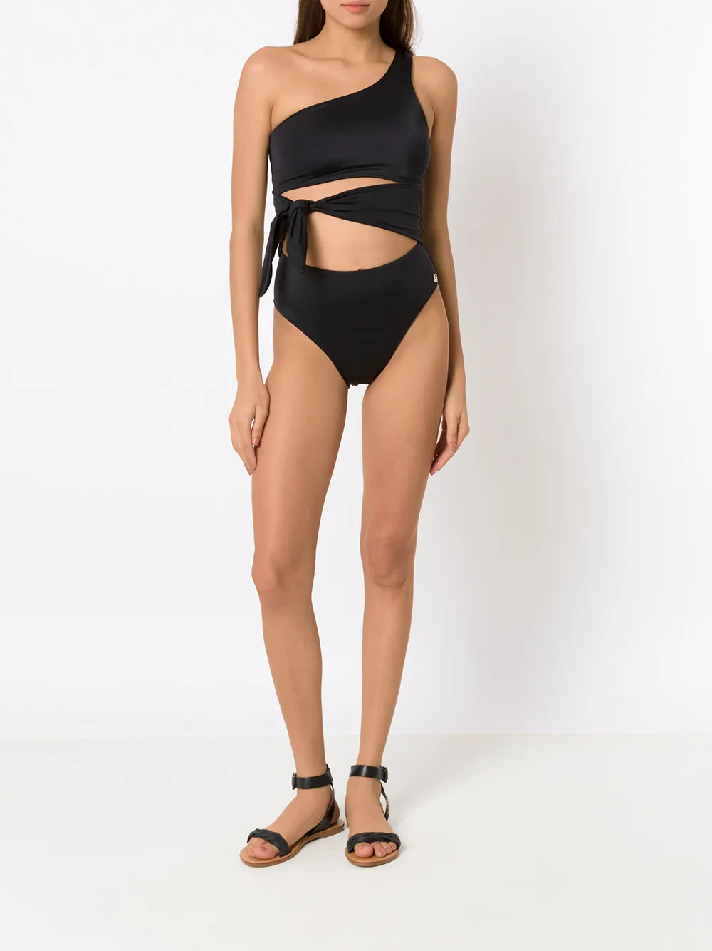 Asymmetrisch, geknoopt detail, uitgesneden detail en stretch design. Zwemkleding moet over uw eigen kleding worden aangepast. Doe dit niet als u eenmaal het water in springt.