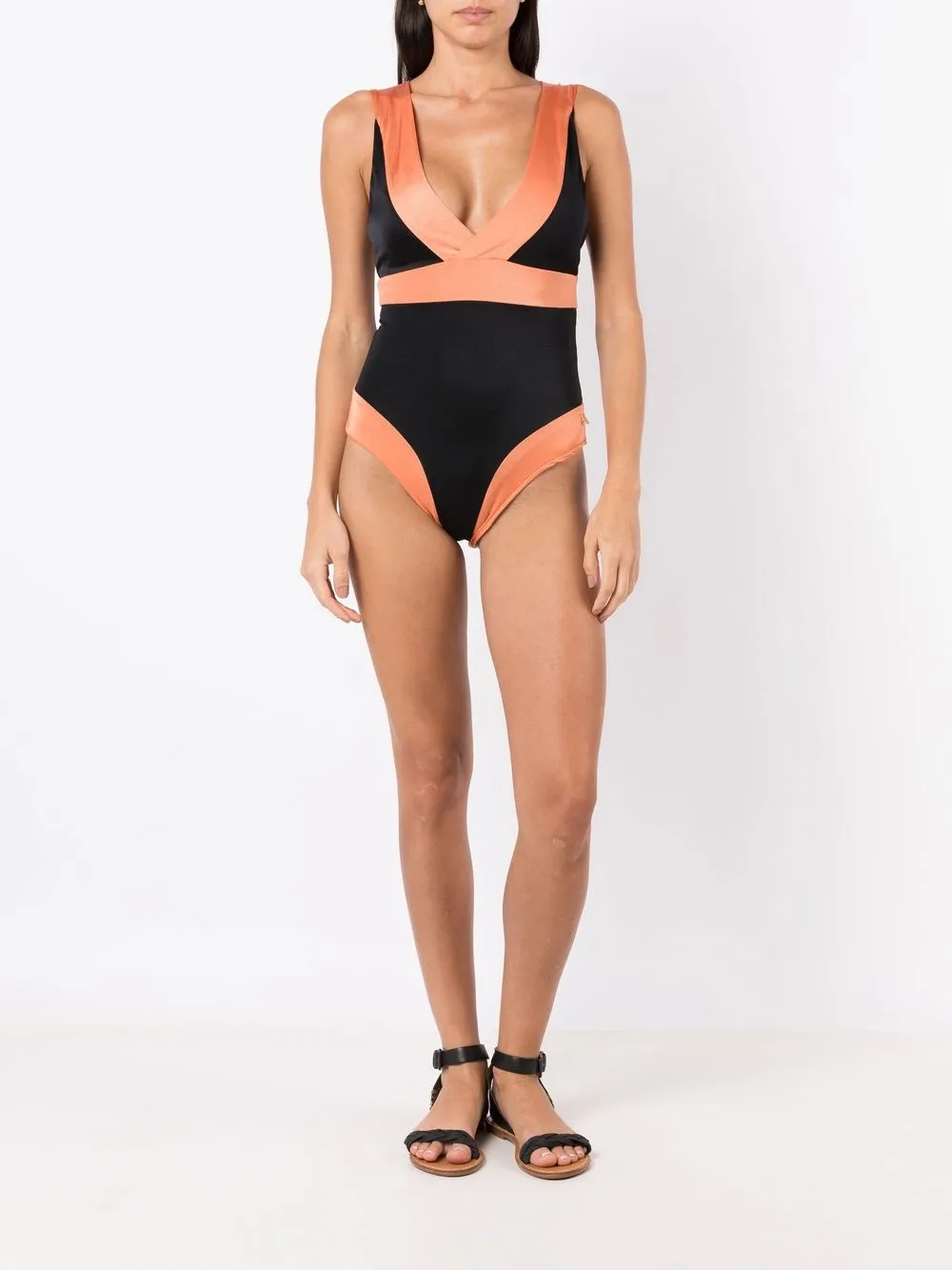 Stretch design, design met vlakken, V-rug, V-hals en mouwloos. Zwemkleding moet over je eigen kleding worden aangepast..