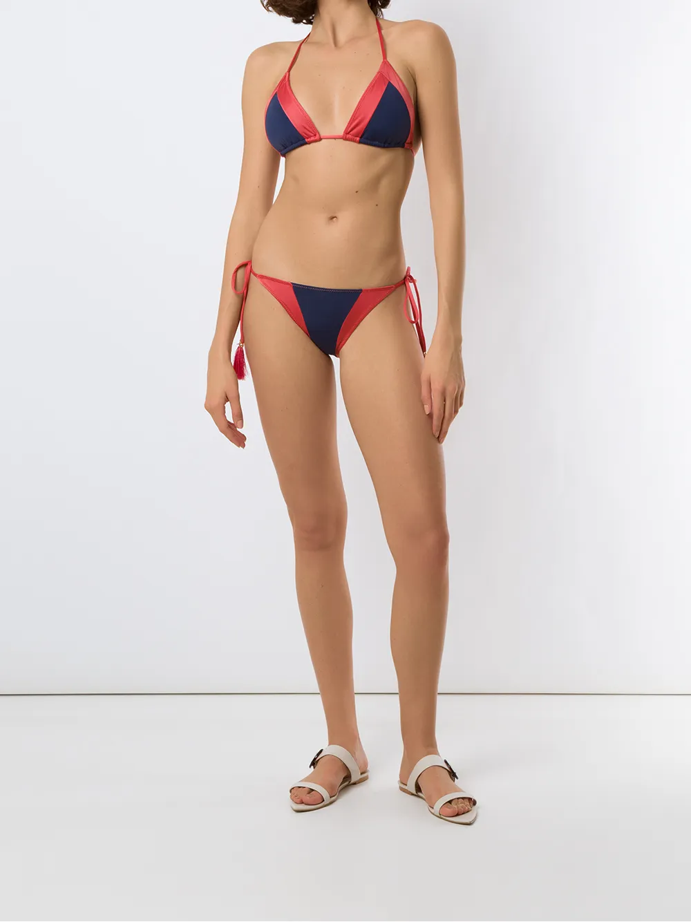 tweekleurig design design met colourblocking triangel cup halternek striksluiting striksluiting aan de achterkant kwastjesdetail broekje met striksluiting Zwemkleding moet over uw eigen kleding worden aangepast. Doe dit niet als u eenmaal het water in springt