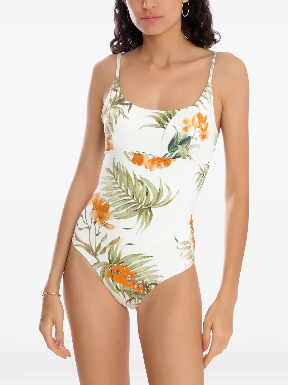 wit all-over bloemenprint ronde hals dunne schouderbandjes open rug low-cut Zwemkleding moet over je eigen kleding worden aangepast.
