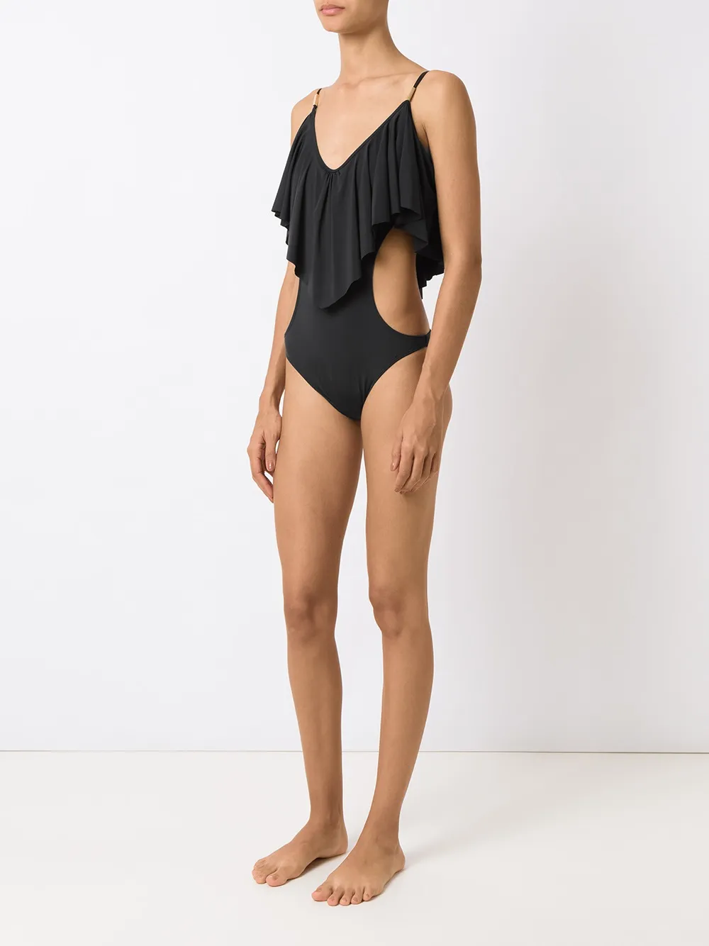 Gegolfde badpak van Brigitte. Zwemkleding moet over uw eigen kleding aan worden gepast.