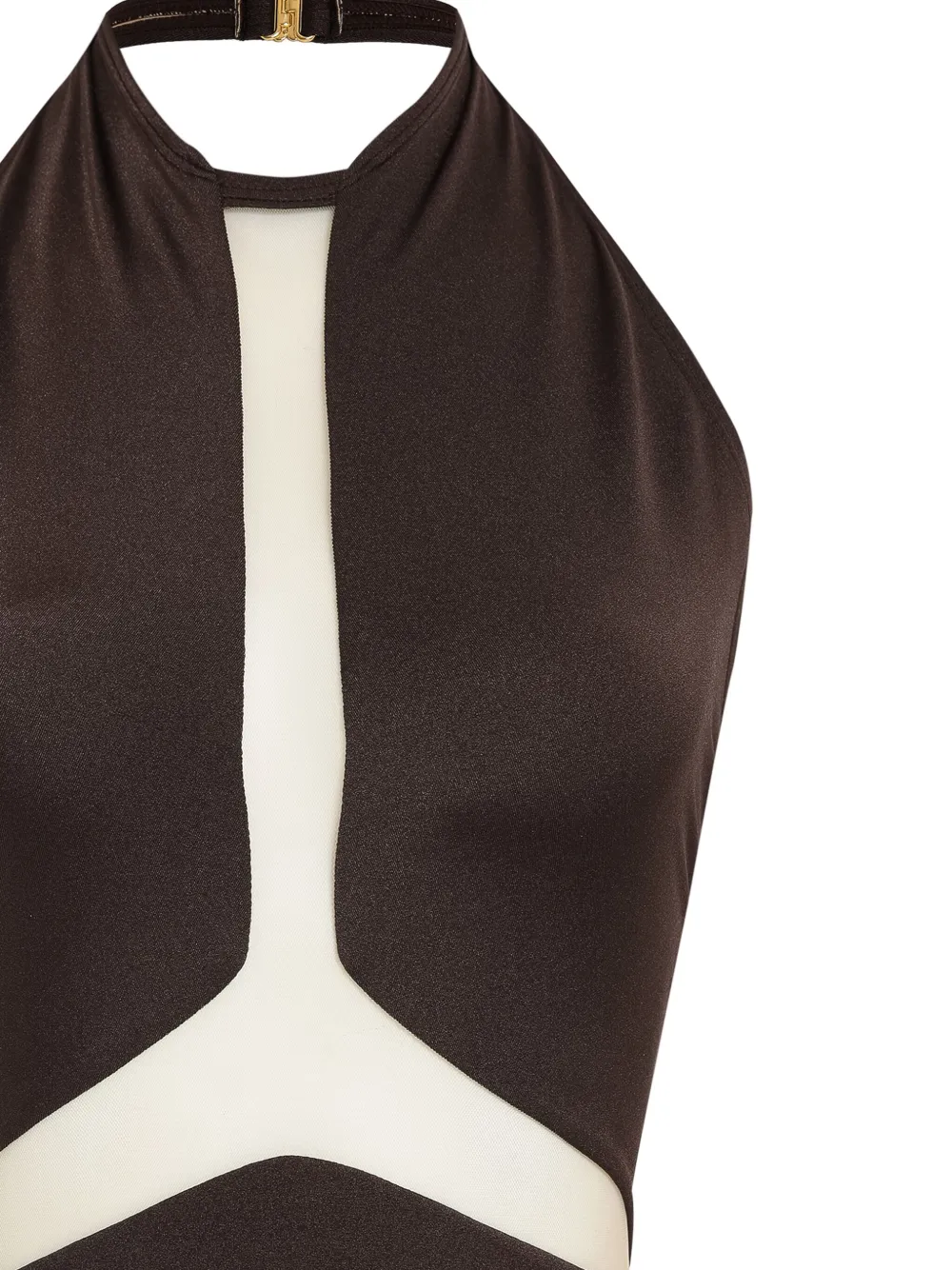 koffiebruin stretch design vlakken sluiting aan de achterkant halternek logoplakkaat open rug Zwemkleding moet over je eigen kleding worden aangepast.