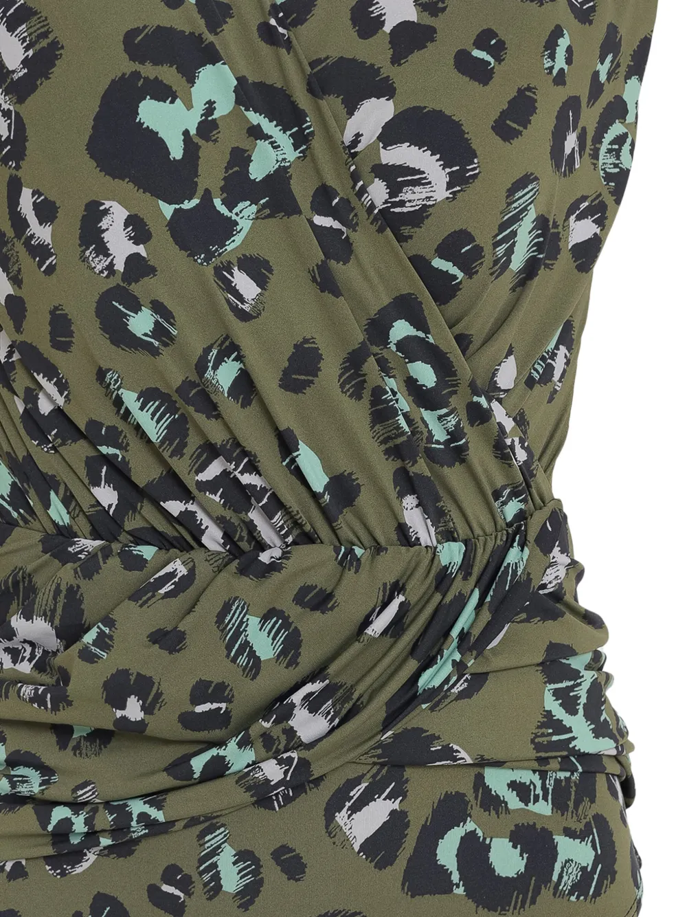 groen haaksluiting aan de achterkant luipaardprint mouwloos uitgesneden detail Zwemkleding moet over je eigen kleding worden aangepast.