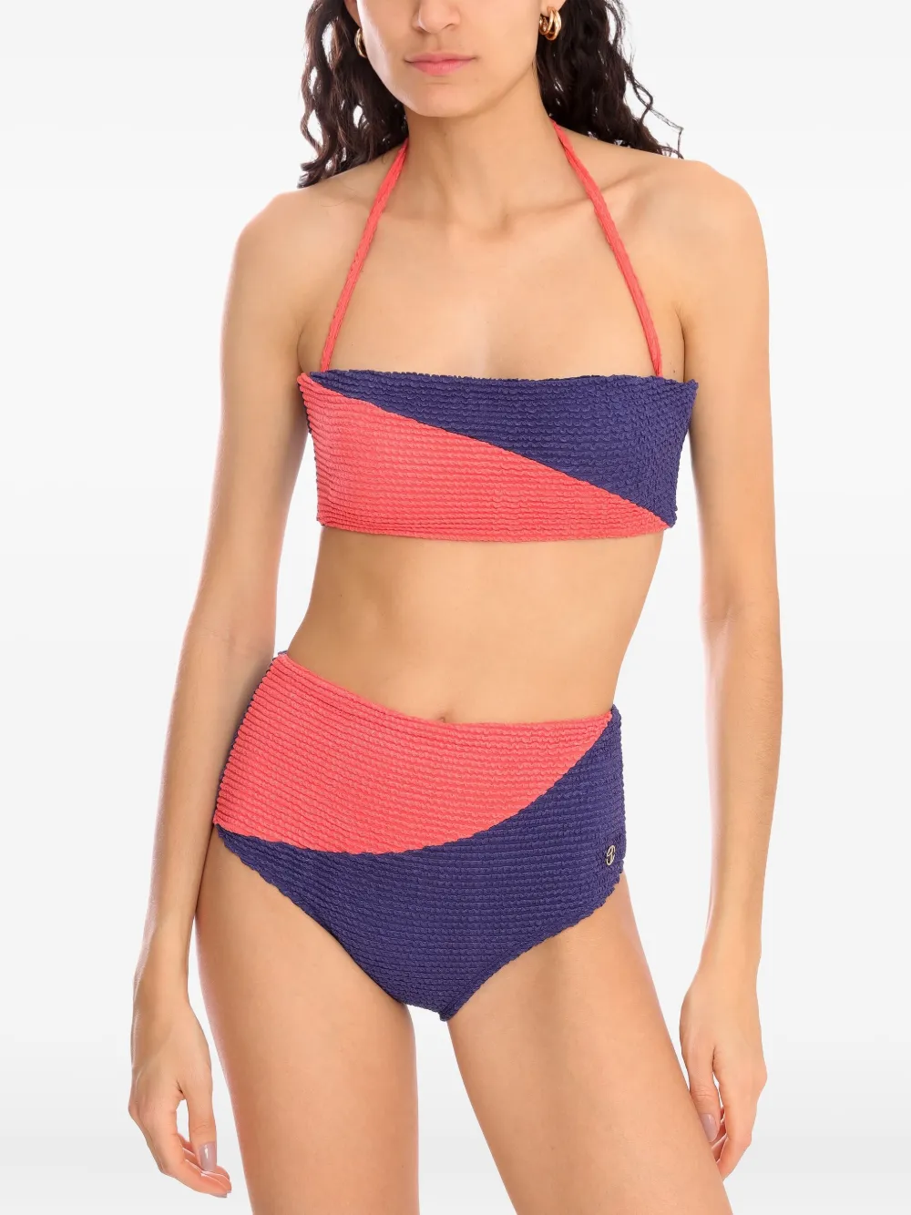 roze/marineblauw high waist bikinibroek bandeau top Zwemkleding moet over je eigen kleding worden aangepast.