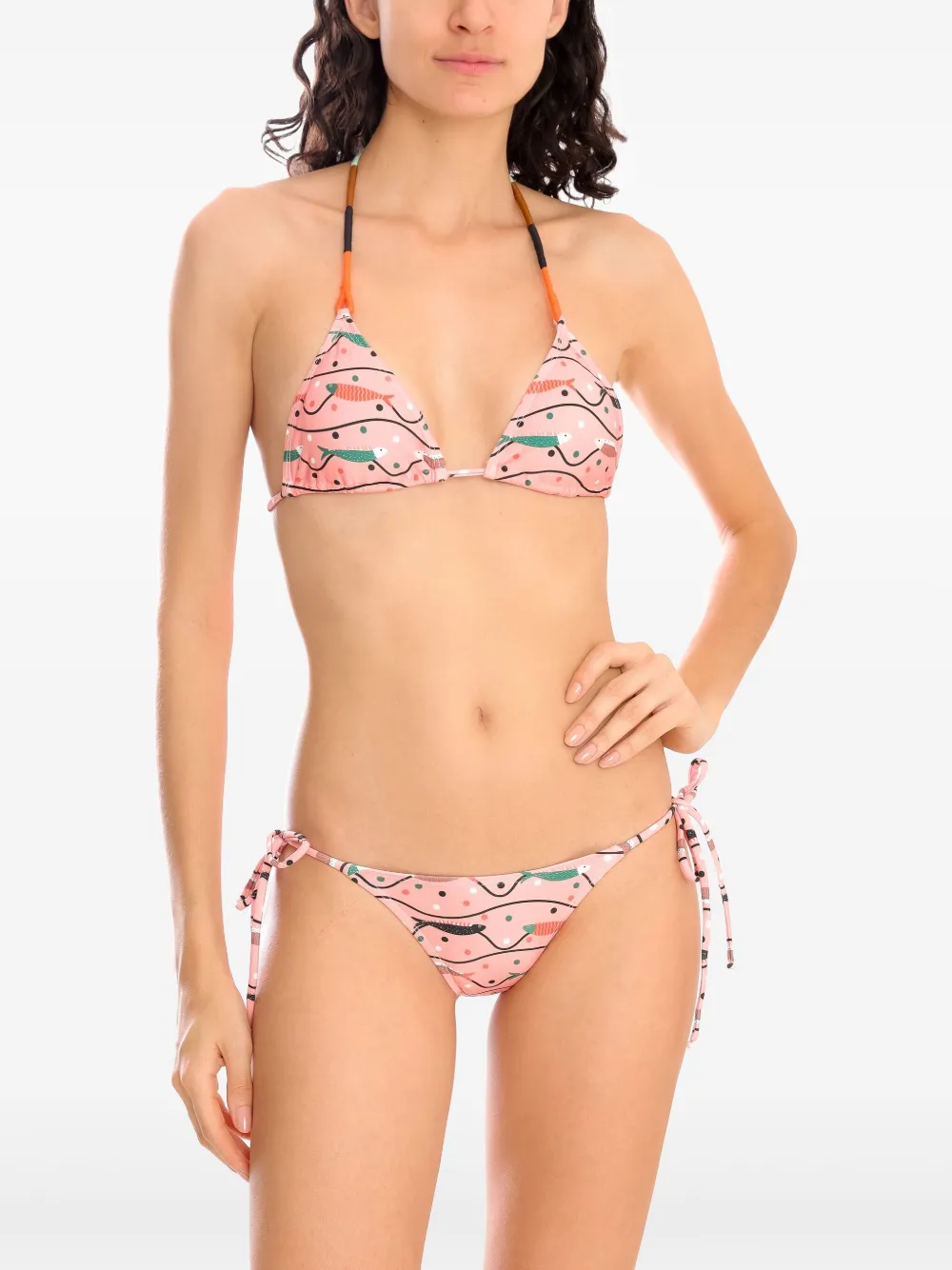 roze all-over grafische print triangel cup gestrikte bandjes Zwemkleding moet over je eigen kleding worden aangepast.