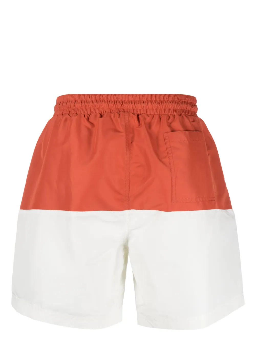 Wit, design met vlakken, logoprint aan de zijkant, elastische tailleband met trekkoord, opgestikt vak aan de achterkant en rechte zoom. Zwemkleding moet over je eigen kleding worden aangepast..