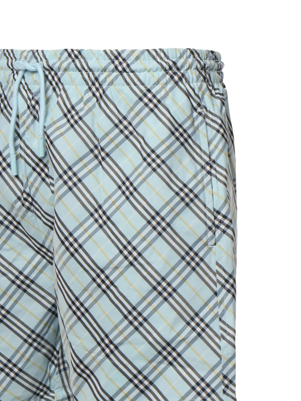 blauw geruit patroon trekkoordtaille zijzakken achterzak Zwemkleding moet over je eigen kleding worden aangepast.