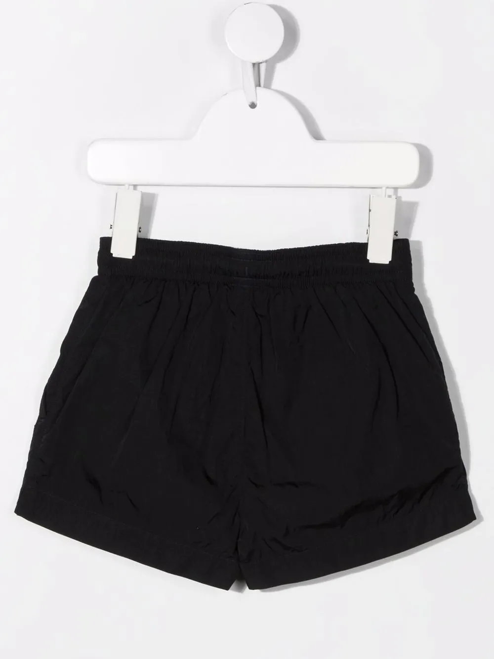 Logopatch aan de voorzijde, elastische tailleband en twee steekzijzakken. Zwemkleding moet over je eigen kleding worden aangepast..