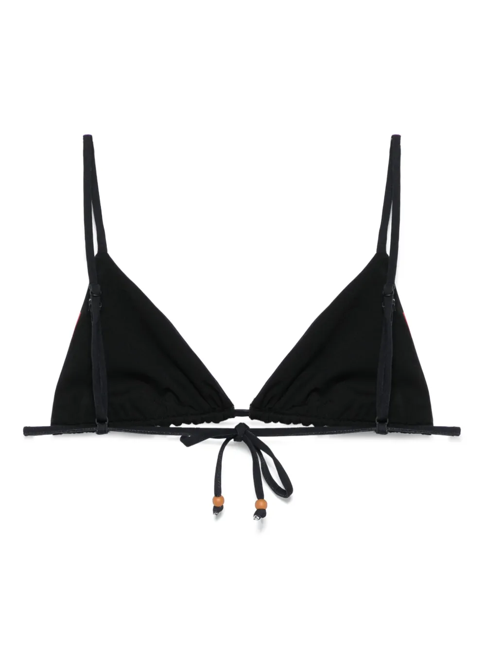 zwart striksluiting aan de achterkant verstelbare spaghettibandjes triangel cup Zwemkleding moet over je eigen kleding worden aangepast.