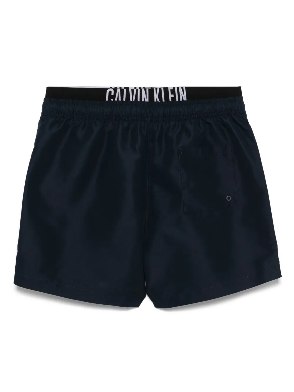 marineblauw elastische tailleband met trekkoord twee ingenaaide zijzakken opgestikte zak aan de achterkant Zwemkleding moet over je eigen kleding worden aangepast.