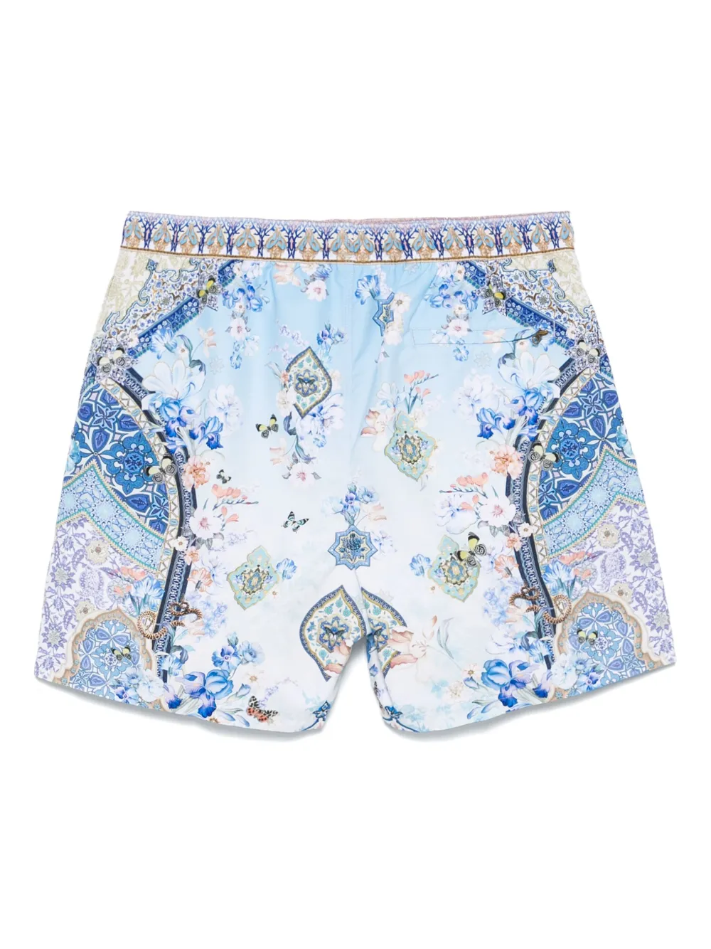 lichtblauw elastische tailleband met trekkoord twee steekzakken aan de zijkant achterzak met ritssluiting Zwemkleding moet over je eigen kleding worden aangepast.