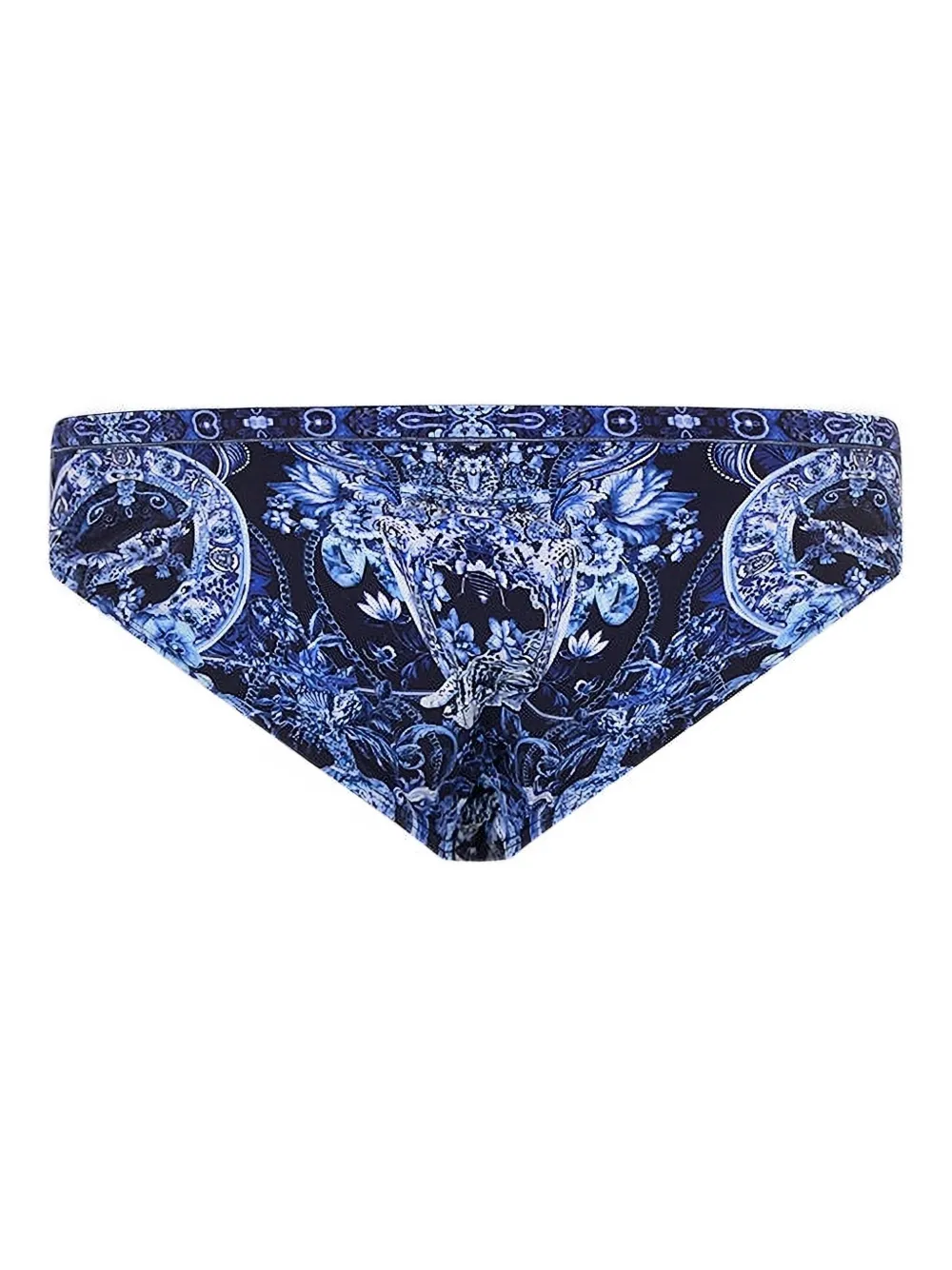 Delft-dynastie grafische print atletische stijl slip Zwemkleding moet over je eigen kleding worden aangepast.