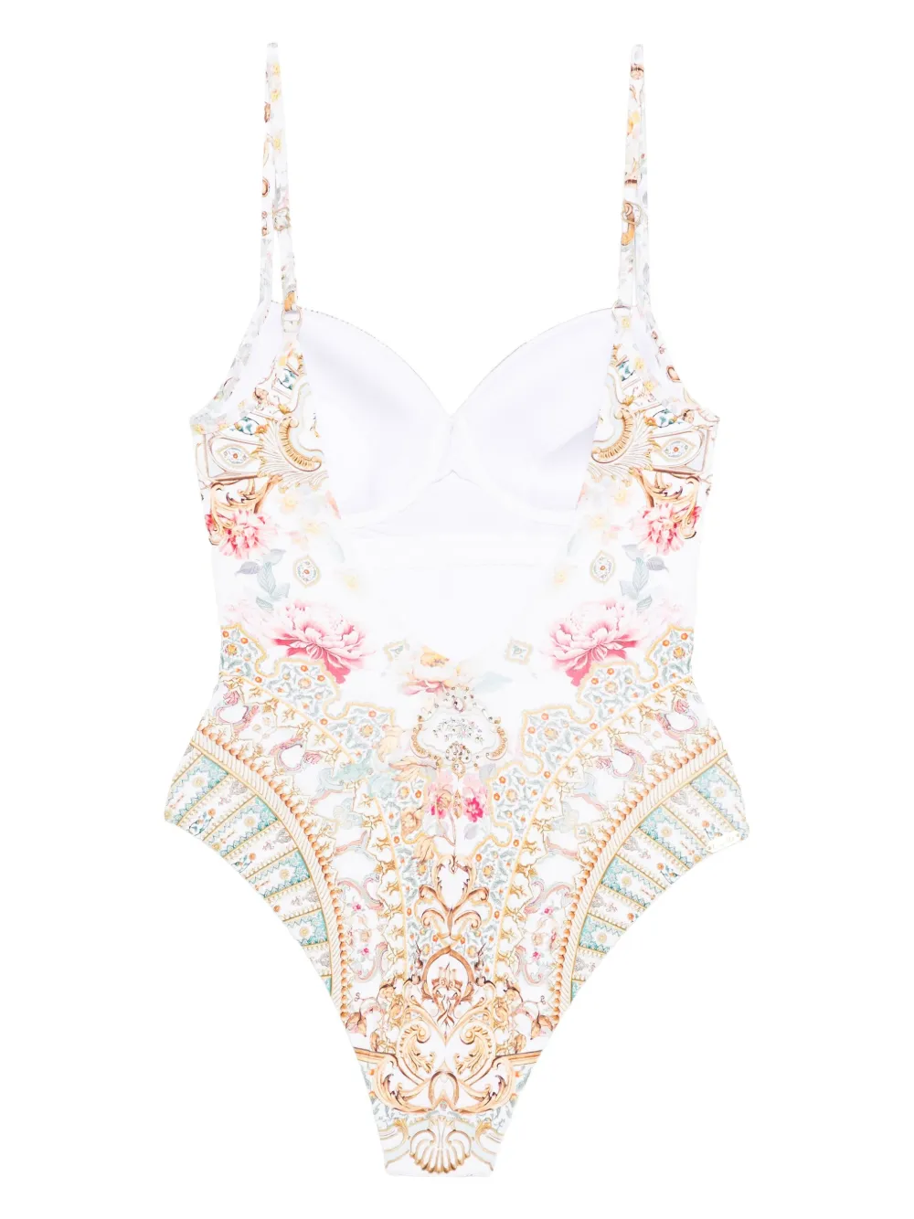 wit bloemenprint verfraaiing hartvormige kraag Zwemkleding moet over je eigen kleding worden aangepast.