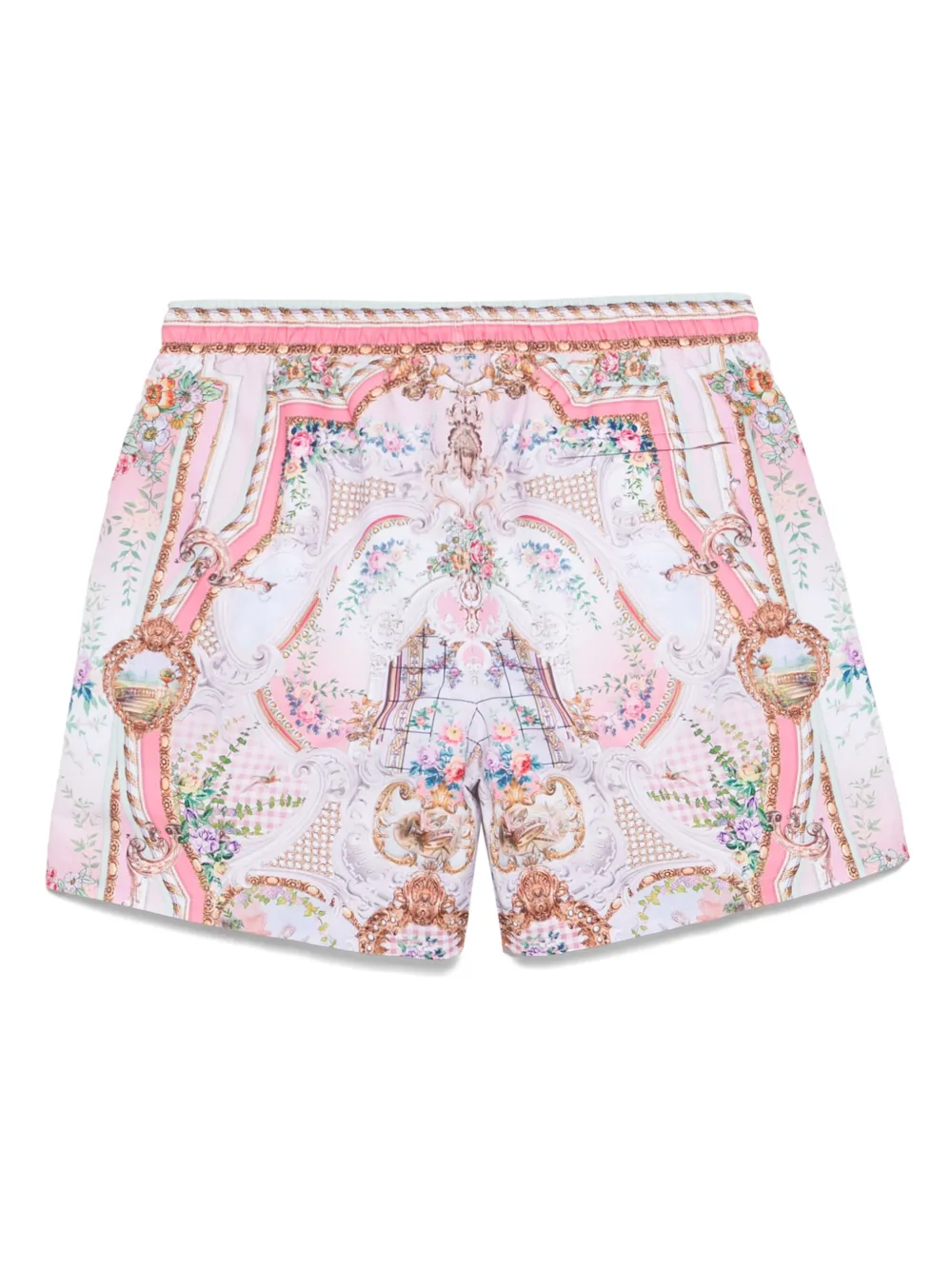 lichtroze elastische tailleband met trekkoord twee steekzakken aan de zijkant paspelzak aan de achterkant Zwemkleding moet over je eigen kleding worden aangepast.