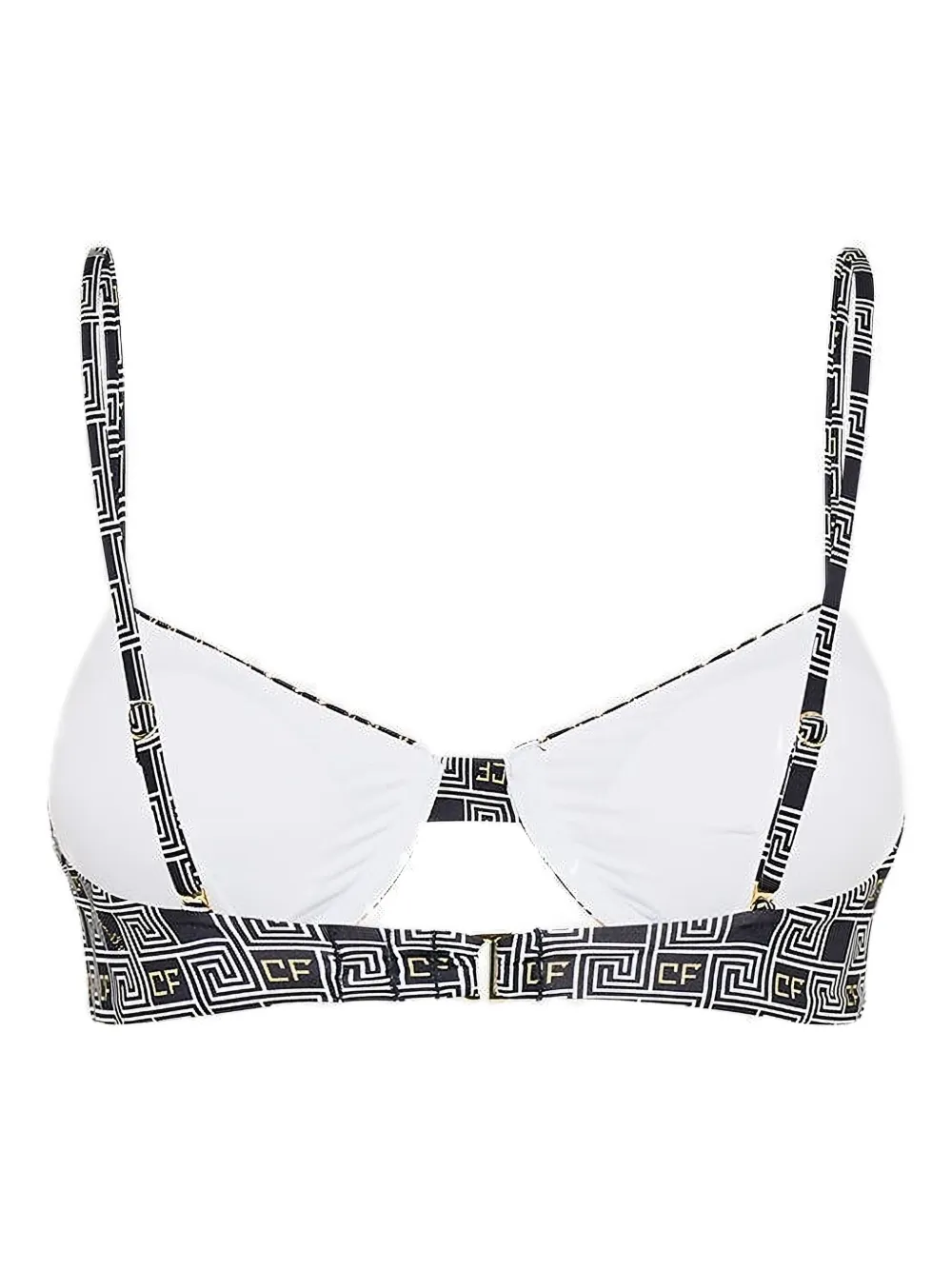 zwart all-over print uitgesneden detail goudkleurige hardware beugelondersteuning verstelbare bandjes Zwemkleding moet over je eigen kleding worden aangepast.