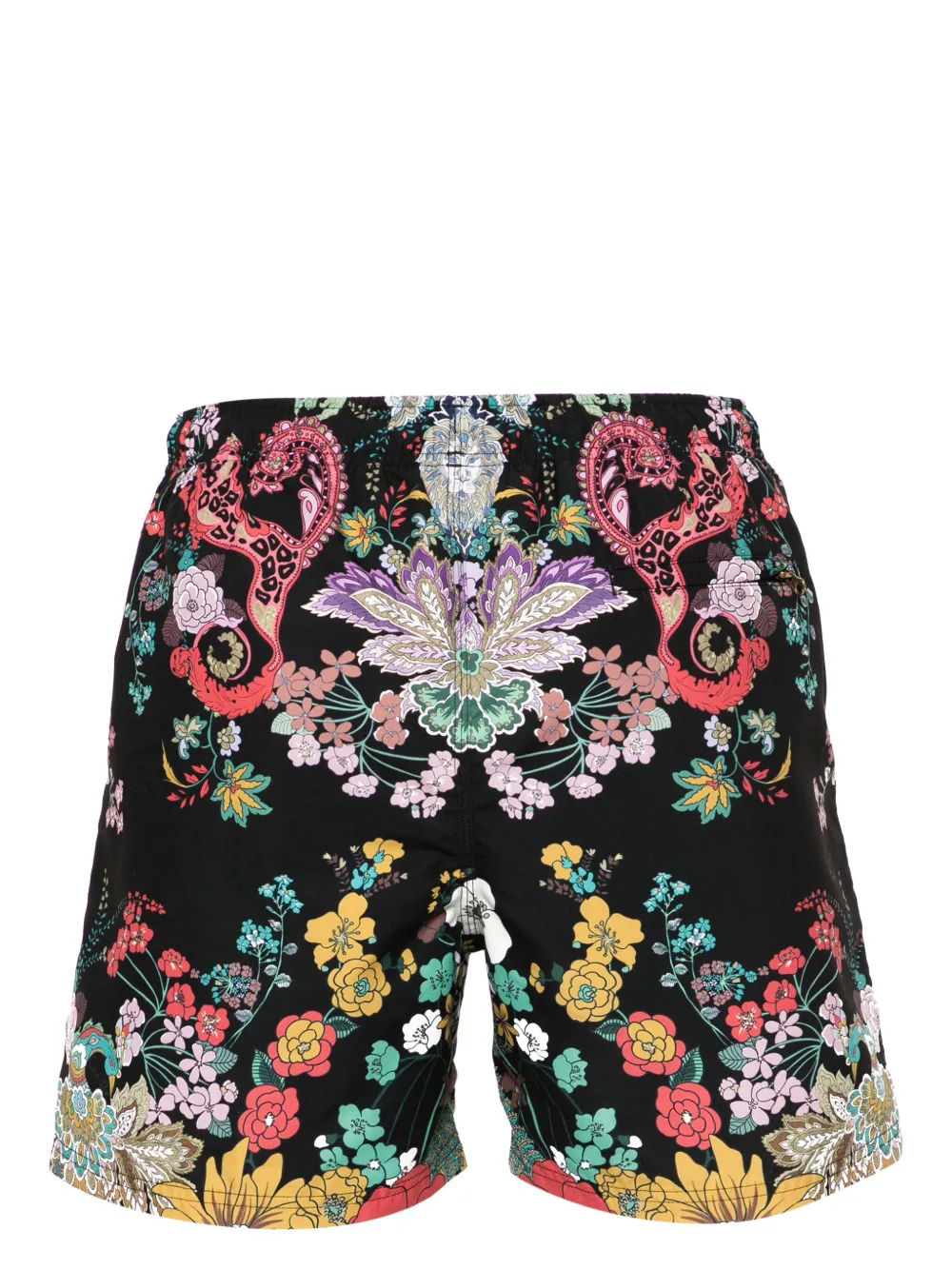 zwart/veelkleurig gerecycled polyester We Wore Folklore print elastische tailleband twee steekzakken aan de zijkant achterzak met ritssluiting slip aan de binnenkant trekkoordsluiting Zwemkleding moet over je eigen kleding worden aangepast.