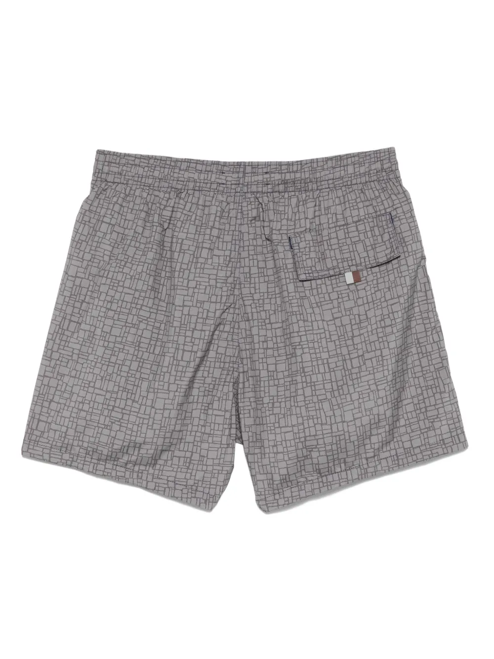medium grijs elastische tailleband met trekkoord twee steekzakken aan de zijkant klepzak aan de achterkant Zwemkleding moet over je eigen kleding worden aangepast.