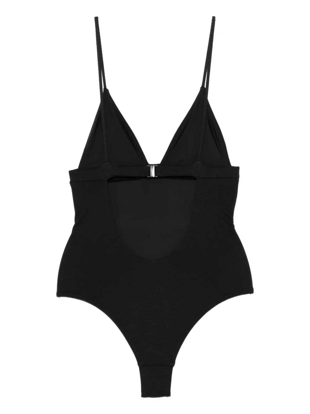 zwart haaksluiting aan de achterkant ribgebreid Zwemkleding moet over je eigen kleding worden aangepast.