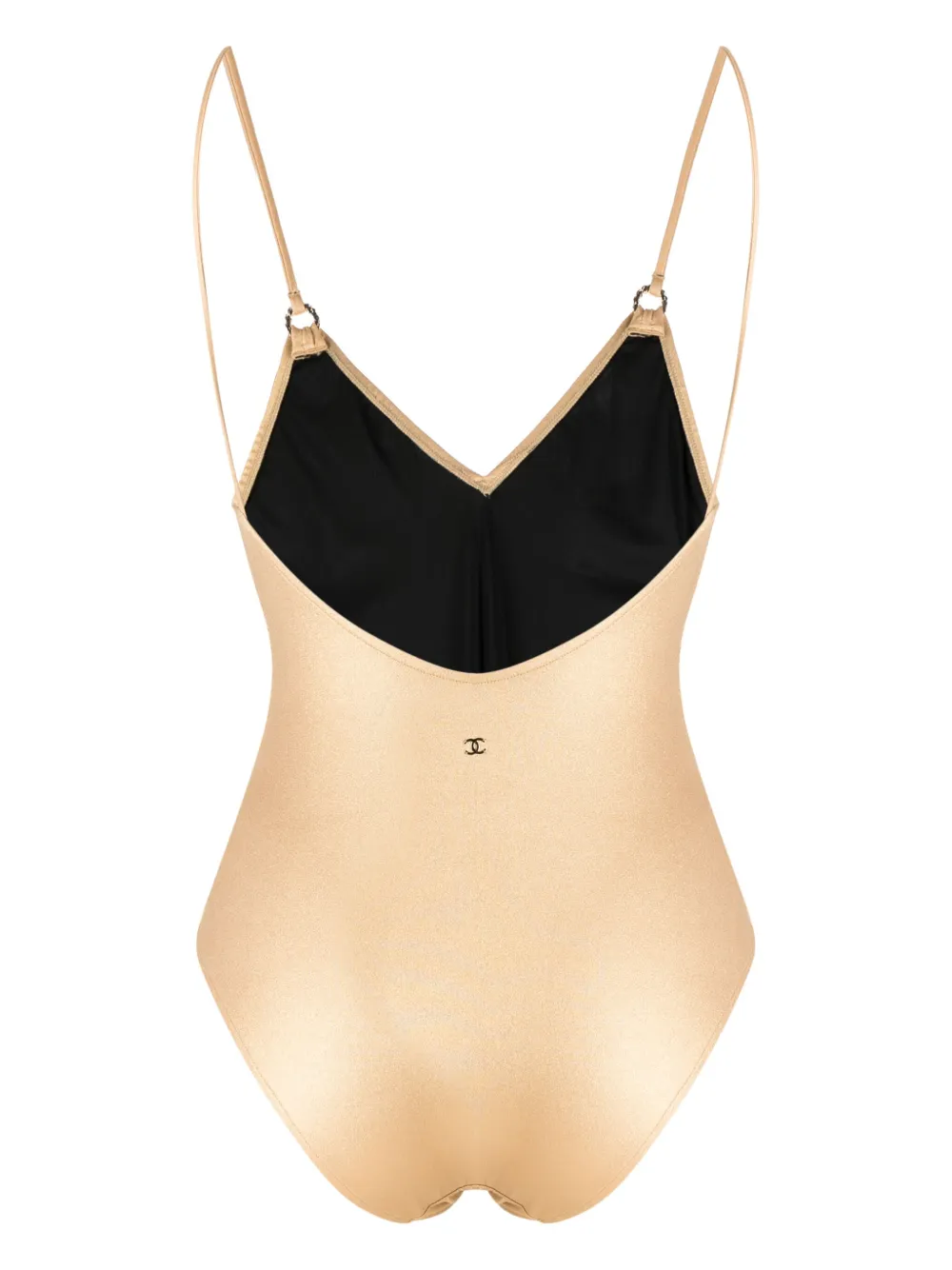 Goudkleurig, metallic effect, V-hals, kenmerkend CC-logo, verstelbare spaghettibandjes en volledige dekking. Zwemkleding moet over je eigen kleding worden aangepast.. Staat: ONGEDRAGEN, MET LABELS. Dit item is eerder in iemands bezit geweest, maar is ongedragen en bevindt zich in de oorspronkelijke staat. Komt volledig met de originele labels.. . .