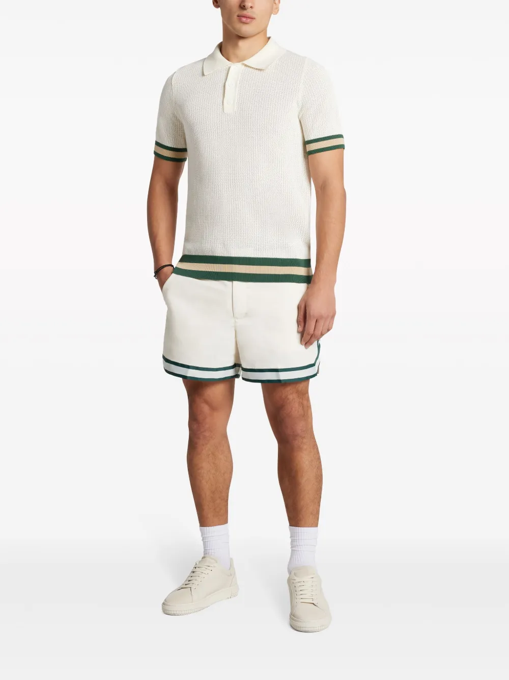wit/groen gestreepte rand elastische tailleband drukknoopsluiting en rits aan de voorkant twee diagonale zijzakken achterzak met ritssluiting zijsplitten dijlengte Zwemkleding moet over je eigen kleding worden aangepast.