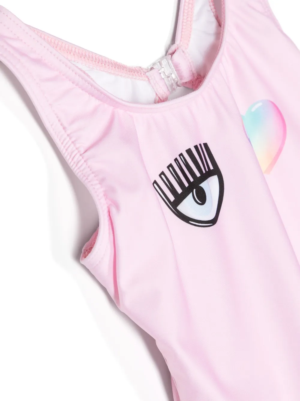 roze/veelkleurig stretch design hartenprint kenmerkend Eyelike patroon diepe ronde hals clipsluiting aan de achterkant open rug volledige voering Zwemkleding moet over je eigen kleding worden aangepast.
