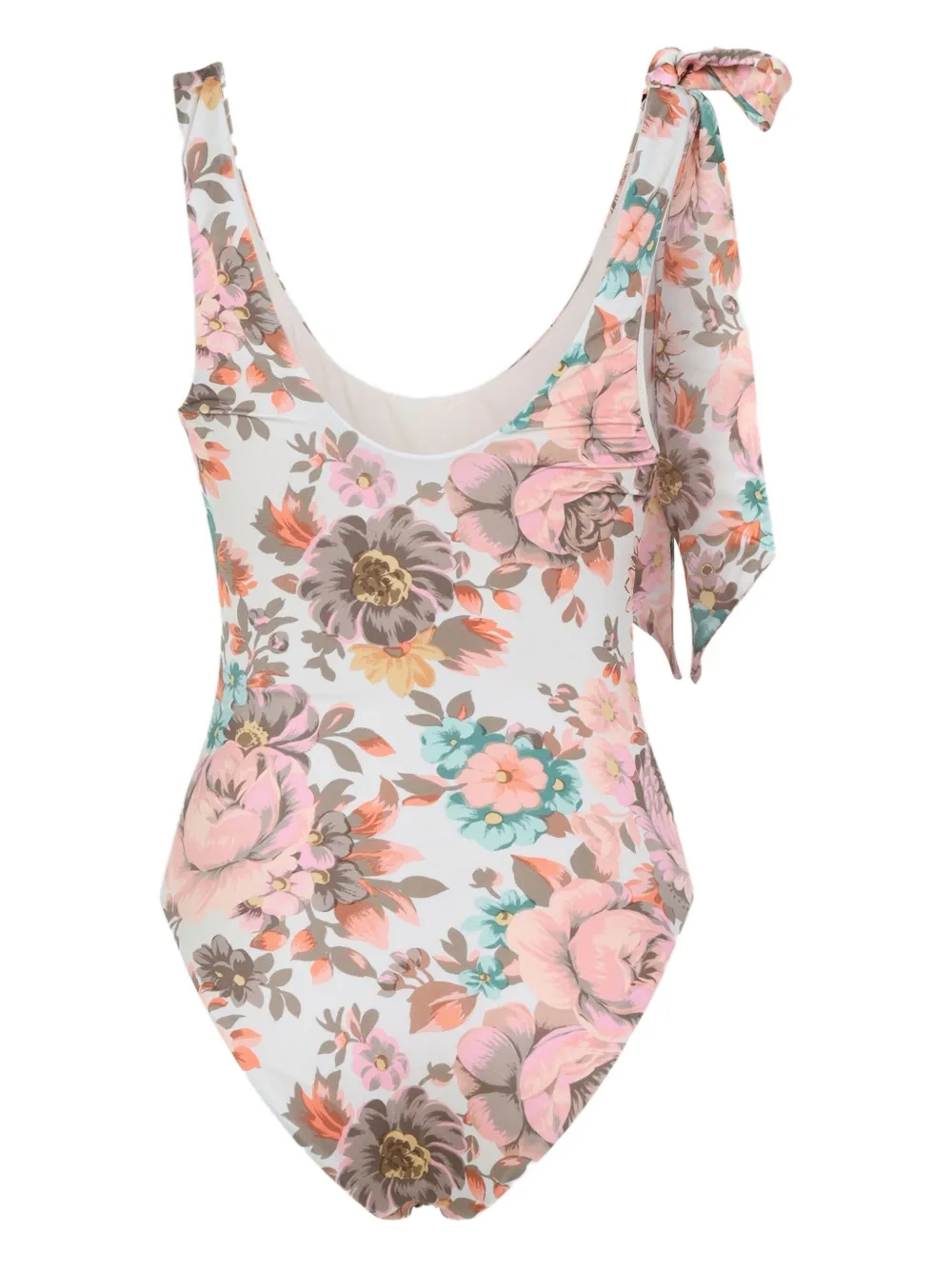 lichtgrijs bloemenprint diepe ronde hals mouwloos geknoopte band Zwemkleding moet over je eigen kleding worden aangepast.
