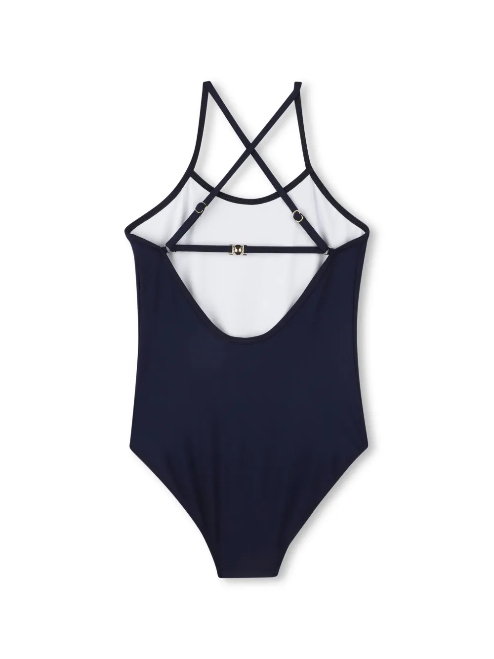 marineblauw/wit stretch design sluiting aan de achterkant diepe ronde hals logoprint op de voorkant gekruiste schouderbandjes open rug volledige voering Zwemkleding moet over je eigen kleding worden aangepast.