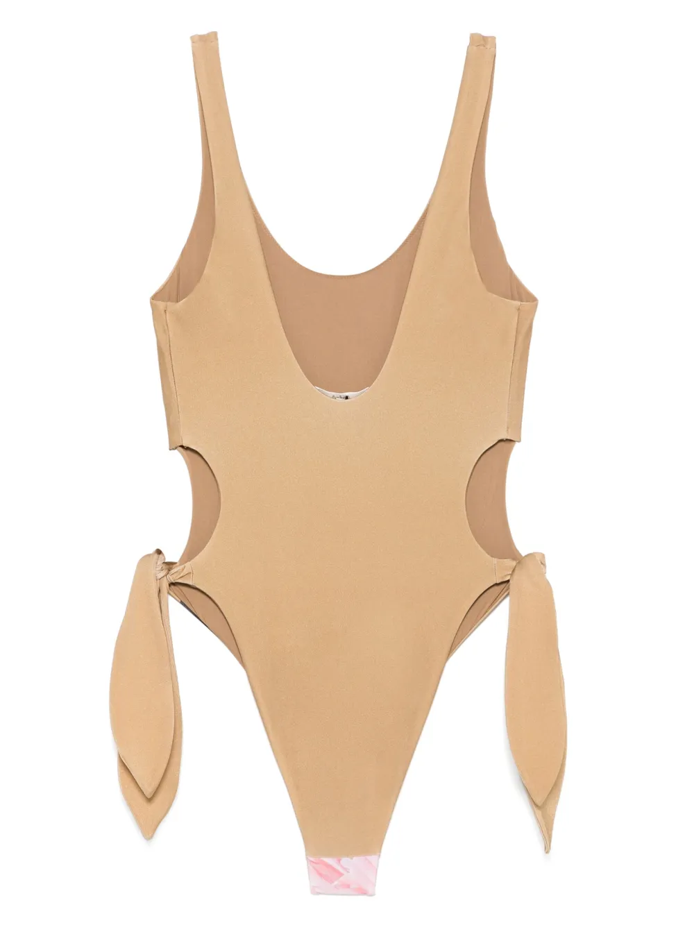 lichtbruin striksluiting aan de zijkant diepe ronde hals ilustratie print Zwemkleding moet over je eigen kleding worden aangepast.