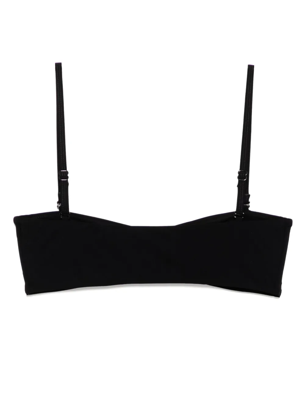 zwart decoratief gespdetail bandeau ruchedetails verstelbare schouderbandjes Zwemkleding moet over je eigen kleding worden aangepast.