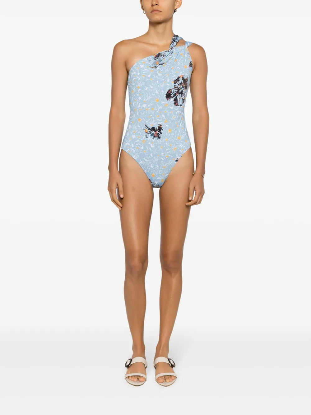 licht beige/cederbruin stretch design all-over bloemenprint enkele schouder lage rug Zwemkleding moet over je eigen kleding worden aangepast.