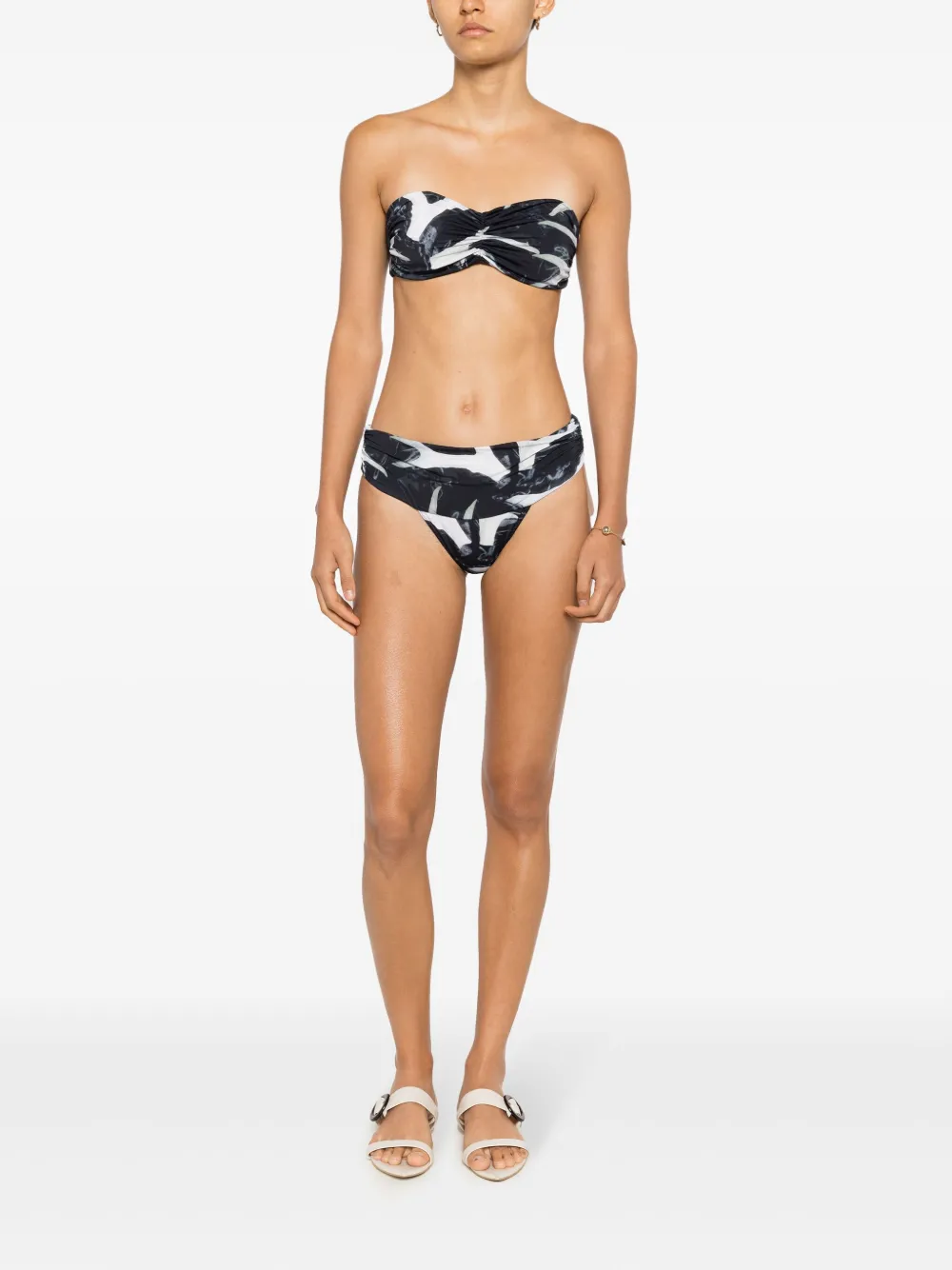 zwart/wit stretch design all-over grafische print ruchedetails afneembaar halskoord bandeau striksluiting aan de achterkant Zwemkleding moet over je eigen kleding worden aangepast.
