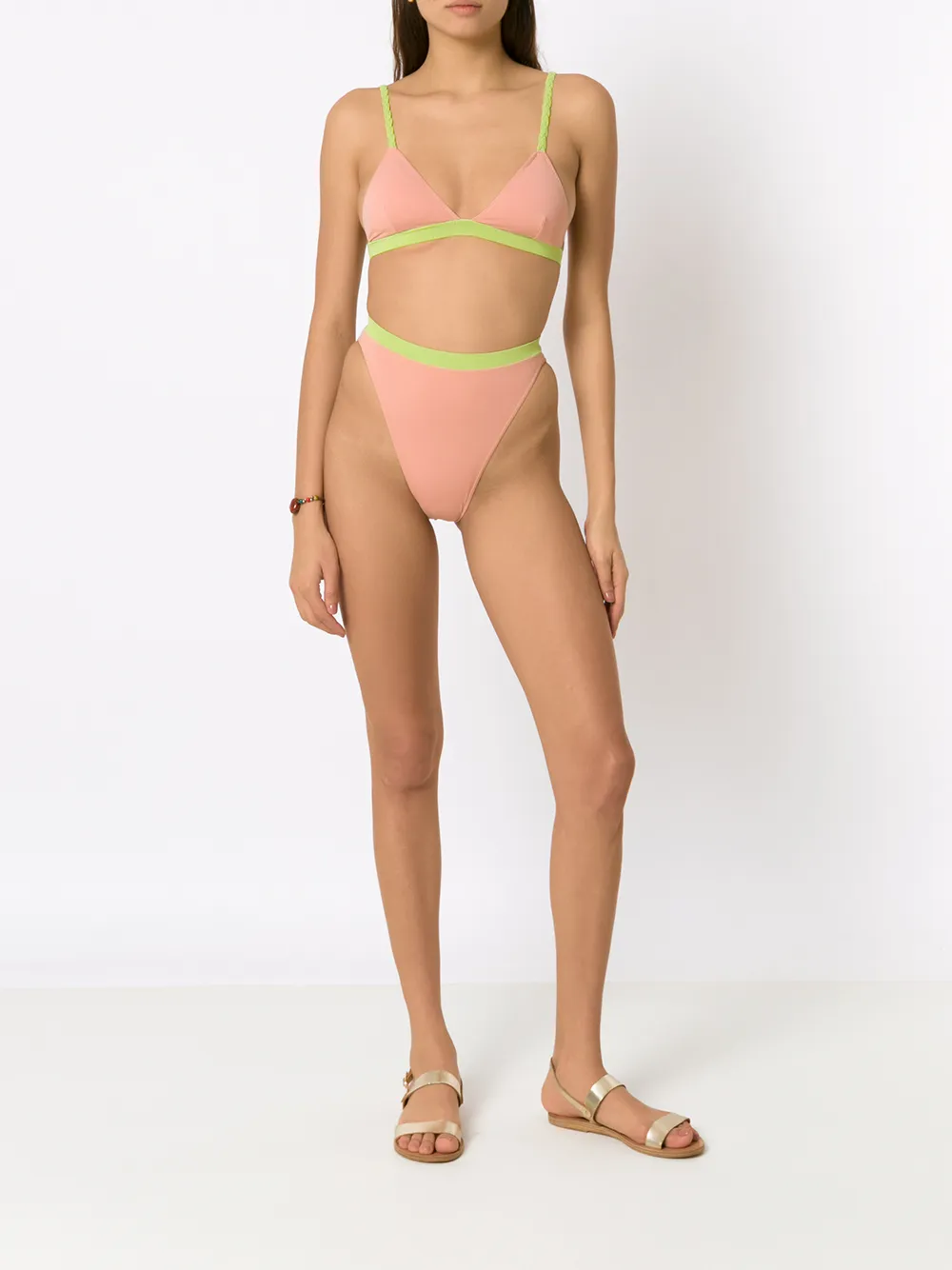 Stretch design, contrasterende afwerking, touw details, triangel cup, gespsluiting aan de achterkant en gespsluiting aan de achterkant. Zwemkleding moet over uw eigen kleding worden aangepast. Doe dit niet als u eenmaal het water in springt.