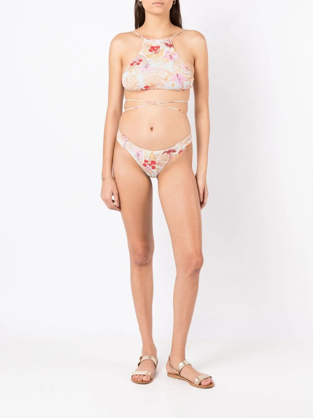 Wit/veelkleurig, stretch design, bloemenprint, ruchedetails en hoog uitgesneden. Zwemkleding moet over je eigen kleding worden aangepast..