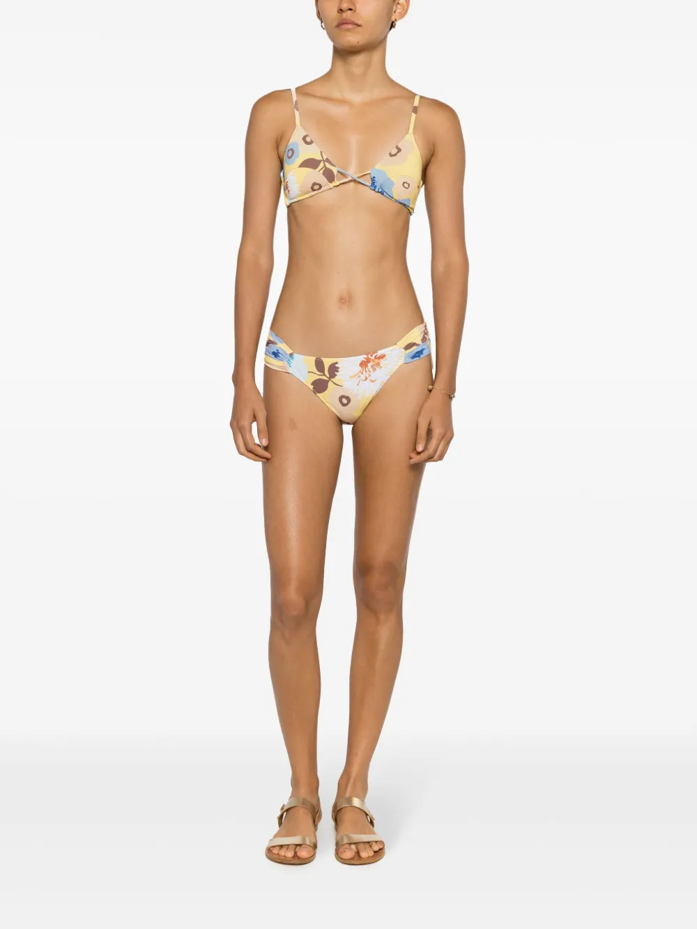 geel/veelkleurig stretch design all-over bloemenprint ruchedetails low waist Zwemkleding moet over je eigen kleding worden aangepast.