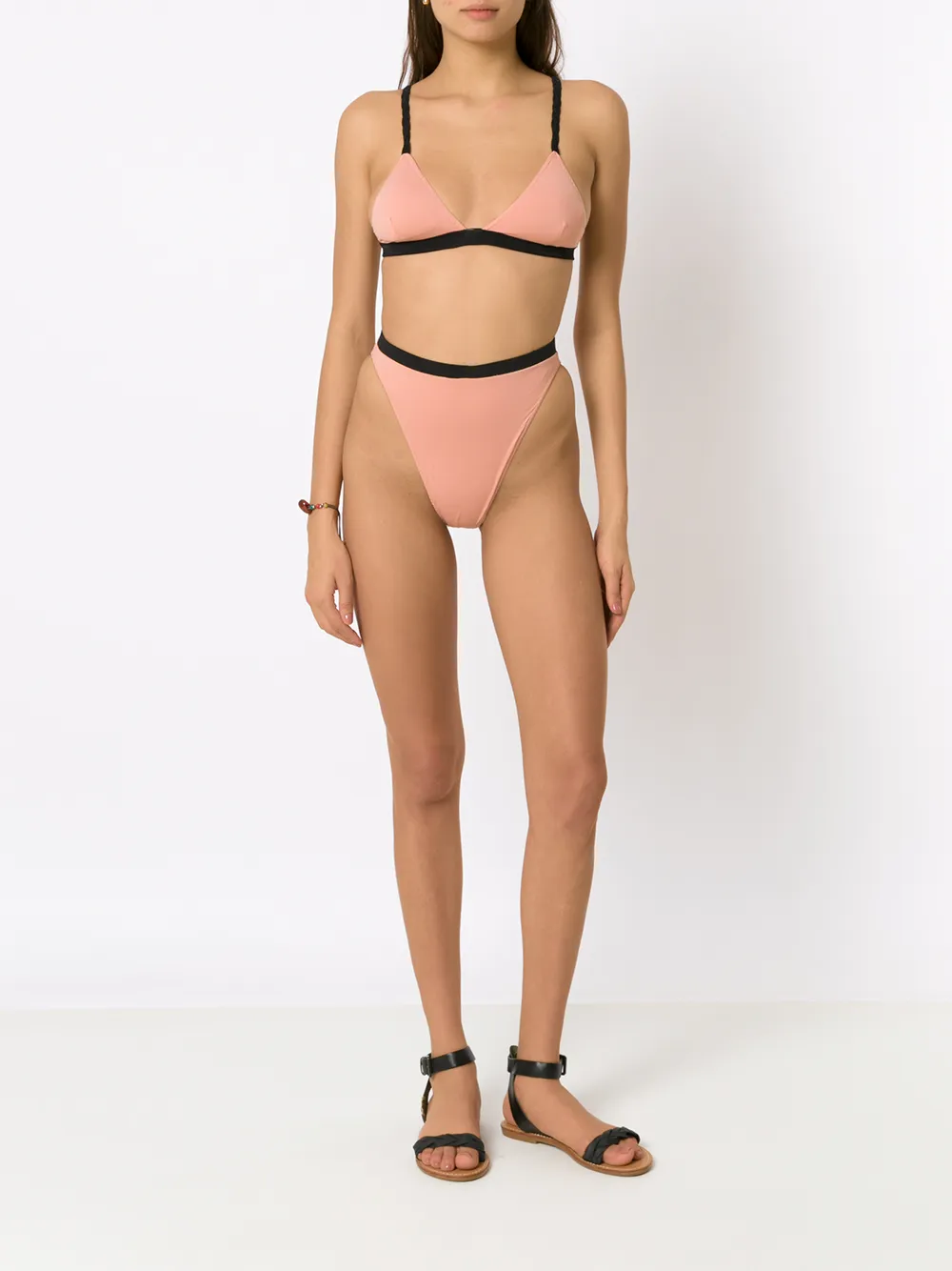 Stretch design, high-waist en contrasterende afwerking. Zwemkleding moet over je eigen kleding worden aangepast.