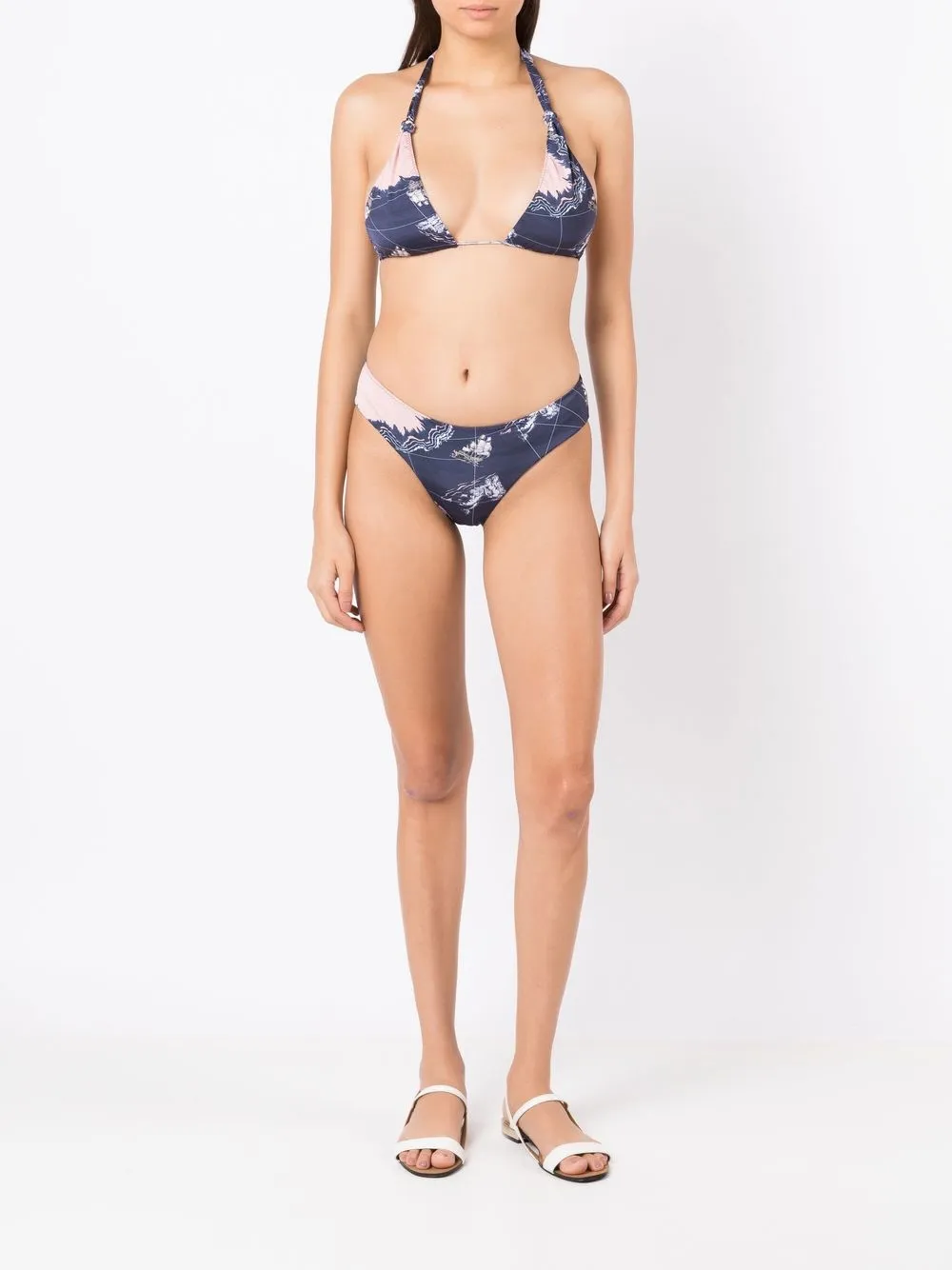 Marineblauw, stretch design, Instapmodel, grafische print en hoog uitgesneden. Zwemkleding moet over je eigen kleding worden aangepast..