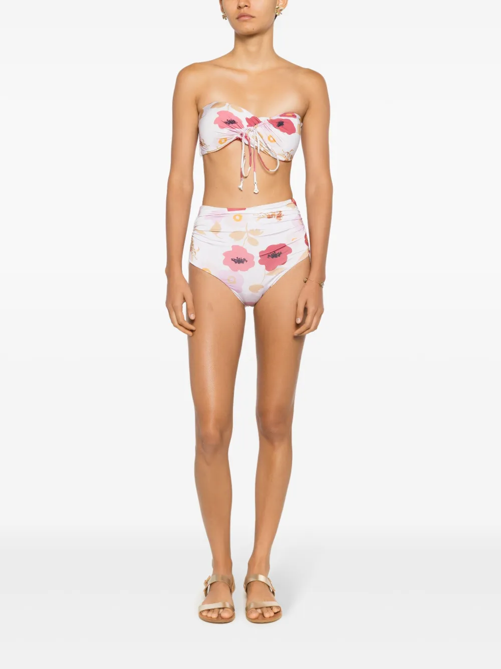 wit/veelkleurig stretch design asymmetrisch design all-over bloemenprint ruchedetails strapless striksluiting aan de achterkant Zwemkleding moet over je eigen kleding worden aangepast.