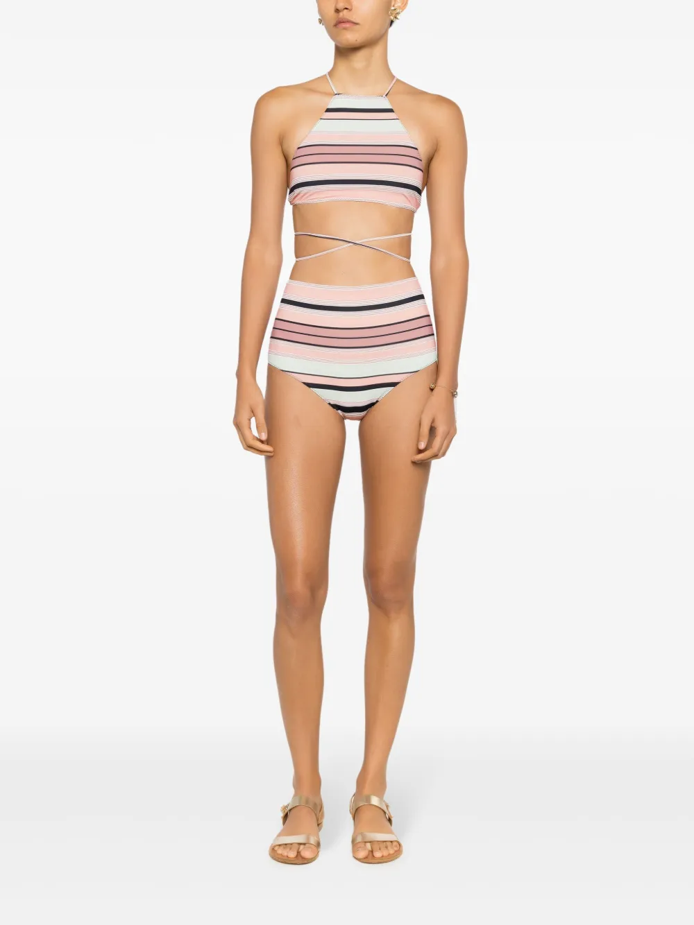 veelkleurig stretch design horizontale strepen halternek striksluiting gekruiste bandjes aan de achterkant Zwemkleding moet over je eigen kleding worden aangepast.