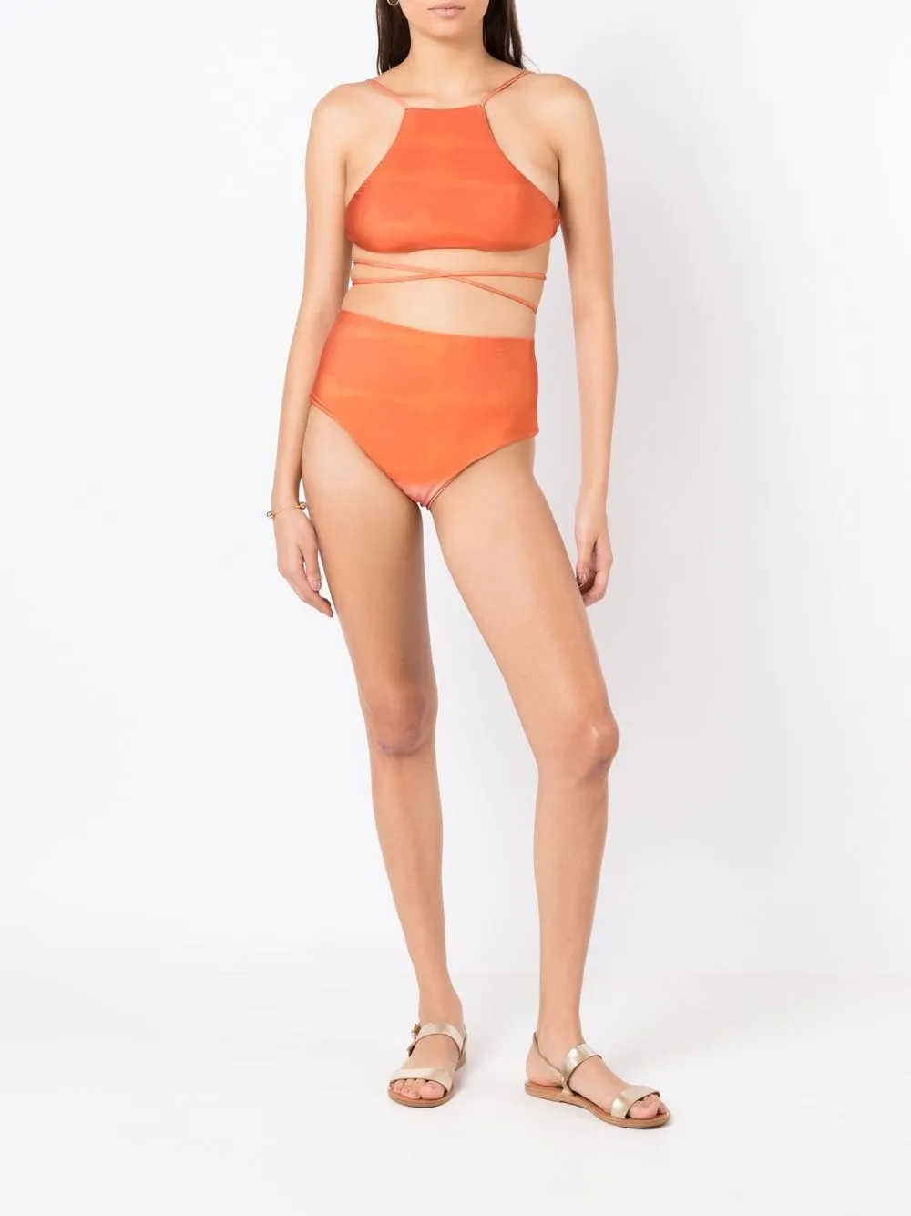 Worteloranje, stretch design, ombré effect, high-waist en hoog uitgesneden. Zwemkleding moet over je eigen kleding worden aangepast..