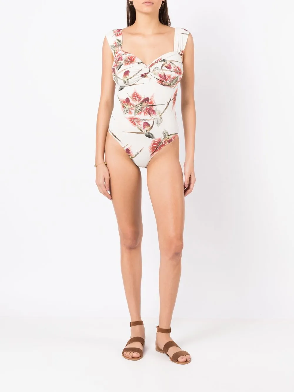 Wit, rozerood, bloemenprint, sweetheart-hals en mouwloos. Zwemkleding moet over je eigen kleding worden aangepast..