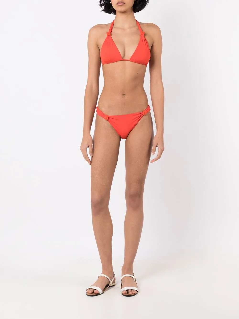 Zonsondergang oranje, triangel cup, halternek striksluiting en striksluiting aan de achterkant. Zwemkleding moet over je eigen kleding worden aangepast..
