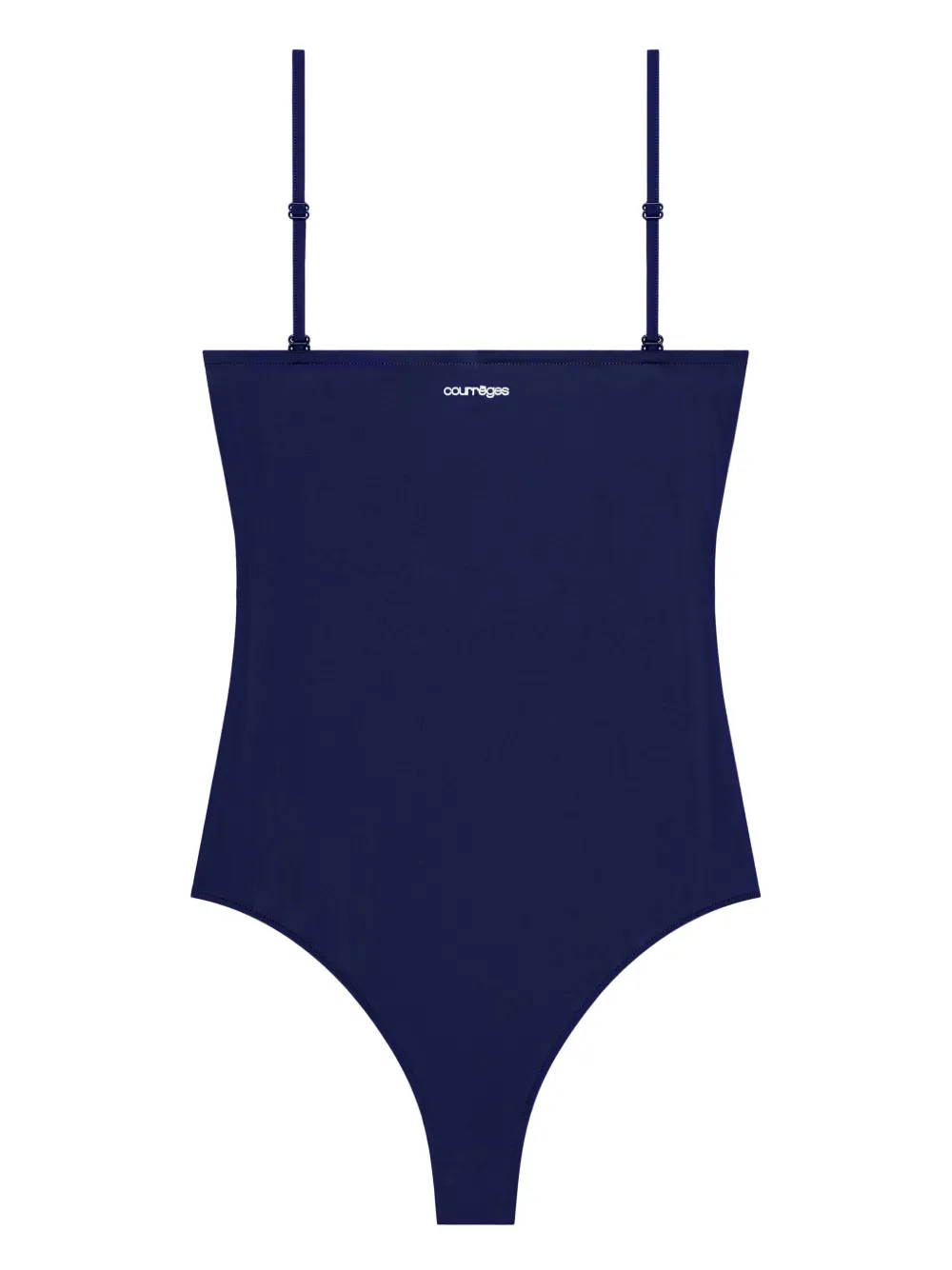 marineblauw verstelbare spaghettibandjes logoprint op de voorkant vierkante hals Zwemkleding moet over je eigen kleding worden aangepast.