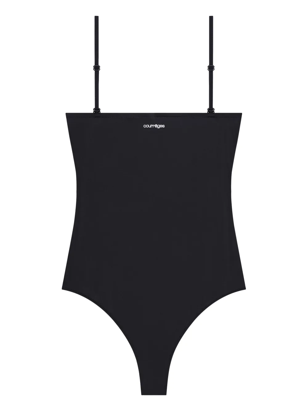 zwart verstelbare schouderbandjes logoprint op de voorkant vierkante hals Zwemkleding moet over je eigen kleding worden aangepast.