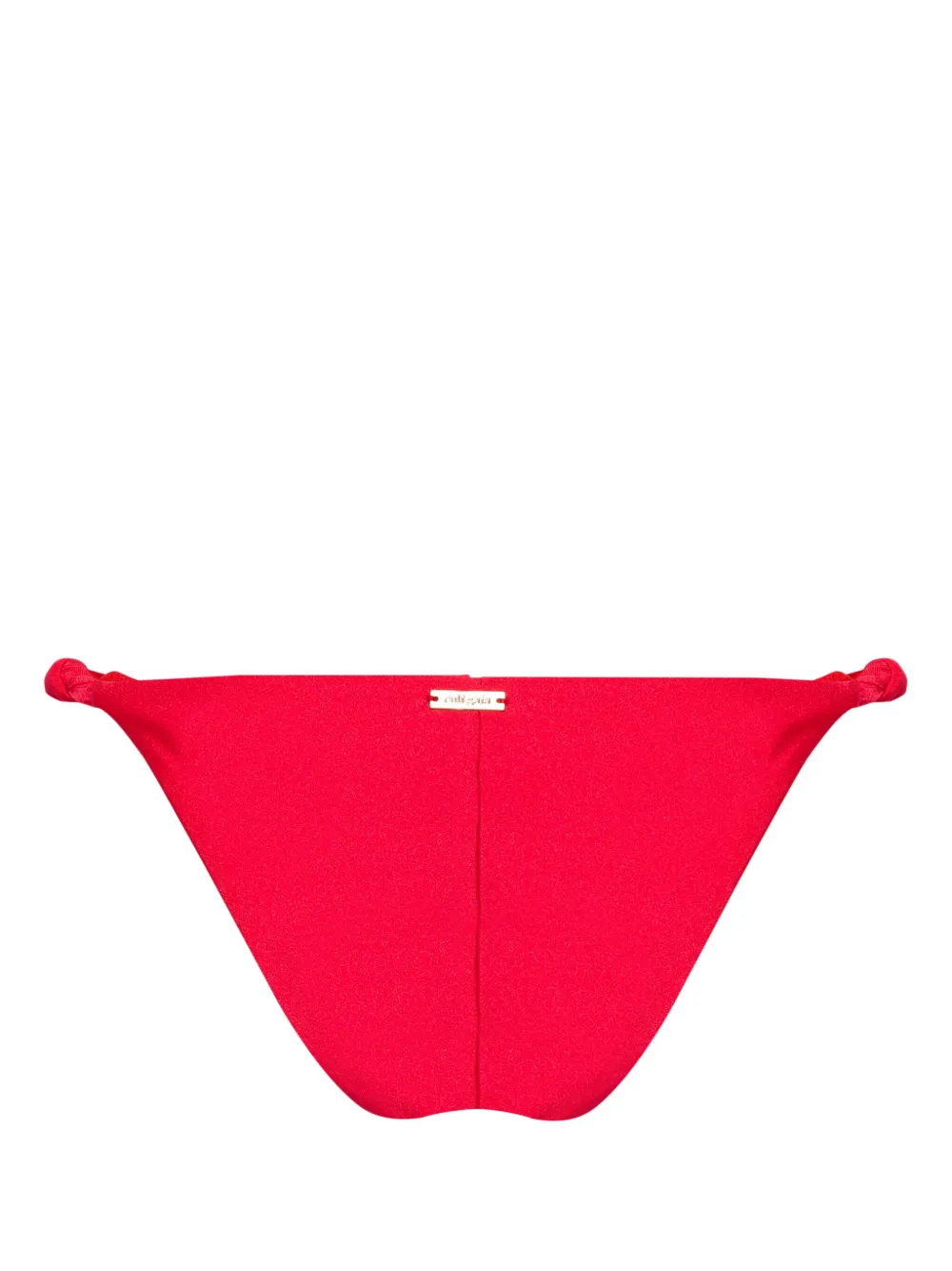 klaproosrood stretch design geknoopt detail goudkleurig logoplakkaat low waist elastische tailleband hoog uitgesneden Zwemkleding moet over je eigen kleding worden aangepast.