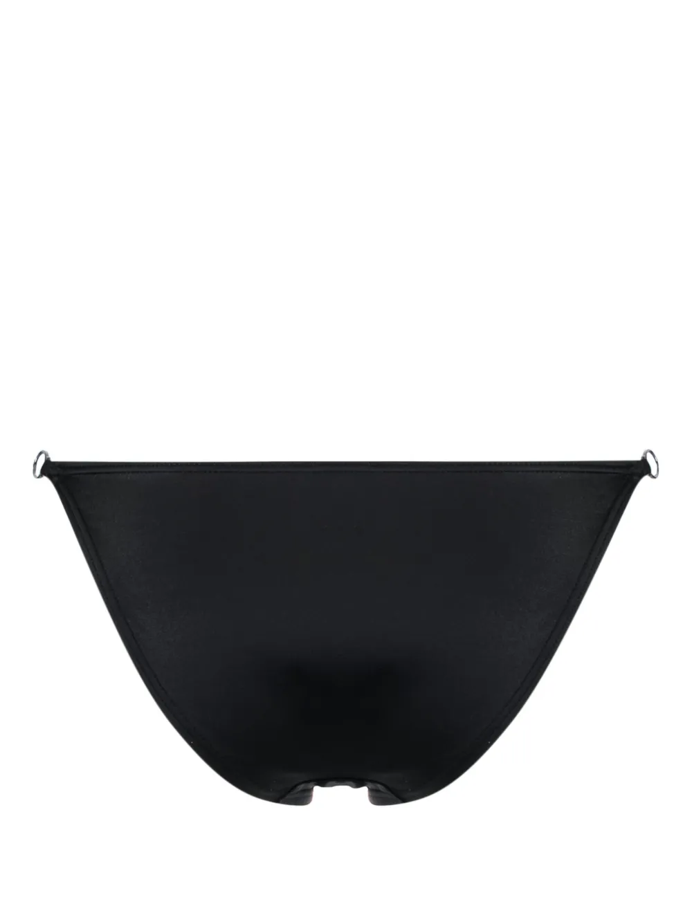 Zwart, stretch design, zilverkleurig materiaal, hoog uitgesneden en string design. Zwemkleding moet over je eigen kleding worden aangepast..