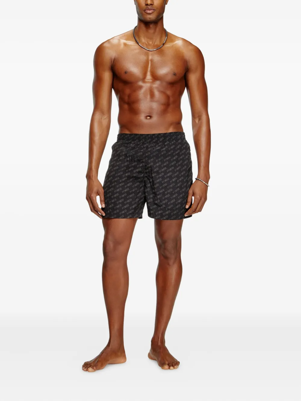 zwart all-over print elastische tailleband zijzakken contrasterende stiksels logo detail Zwemkleding moet over je eigen kleding worden aangepast.